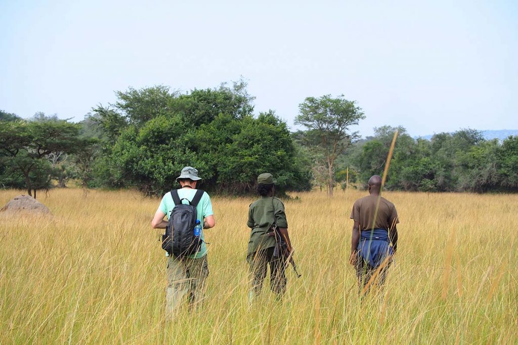 Lake Mburo offers a 2 hours nature walk time frame for tourists to explore her different parts viewing the wildlife on foot. The Nature walks in Lake Mburo guarantee exceptional views of wildlife like medium-sized antelopes with reddish-brown coat and white chest known as Impala that are only found in this park, Eland, klipspringer around rocky outcrops, warthog, African buffaloes, bushbucks, spotted hyenas, leopards, Rothchild’s Giraffe, topis, waterbucks and herds of Zebras among more.